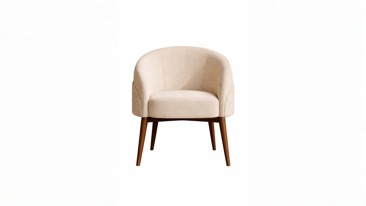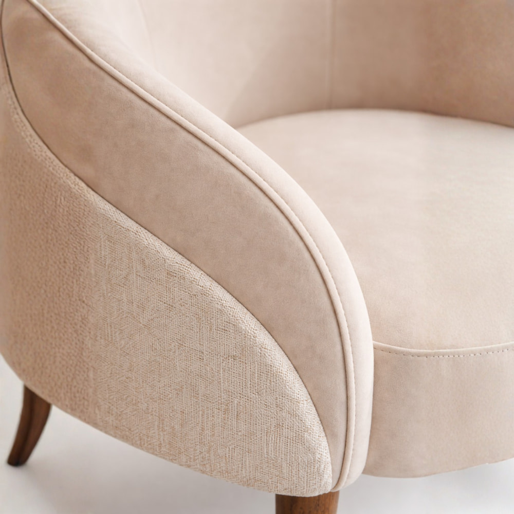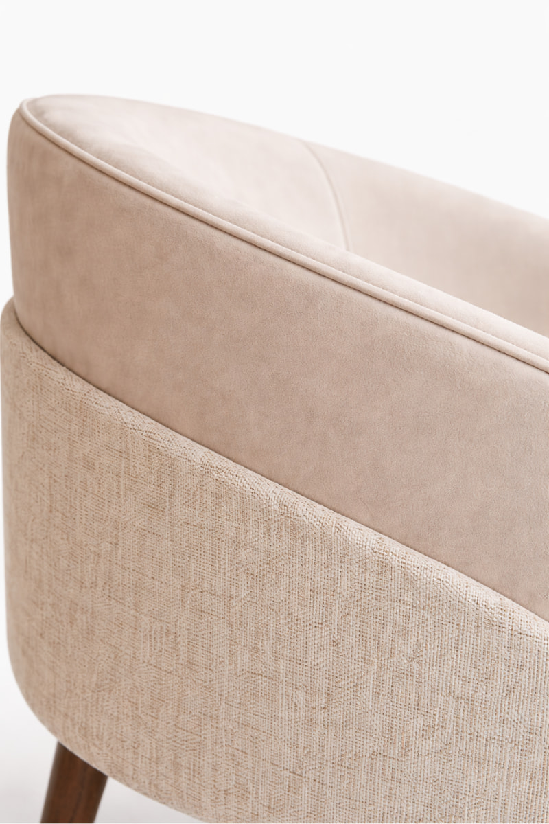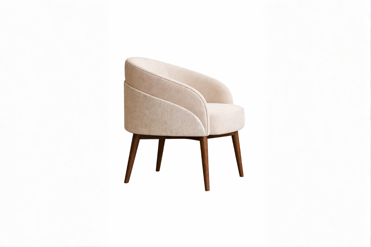 Lex Dining Chair – Blends soft curves with refined two-tone upholstery, creating a sophisticated yet inviting silhouette. Supported by tapered wooden legs, it brings understated elegance and modern warmth to any dining setting.