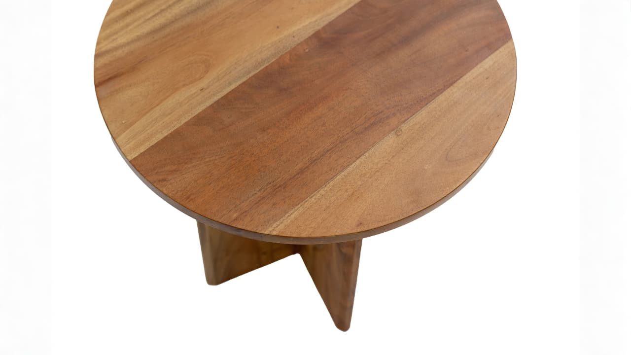 The Lush Side Table showcases sculptural craftsmanship and natural warmth. Crafted from light-toned mahogany, it highlights the wood’s beautiful grain and soft hues. Its round top rests on a distinctive curved base, creating an elegant silhouette. With balanced proportions and timeless appeal, it adds subtle sophistication to living rooms, lounges, or bedside spaces.