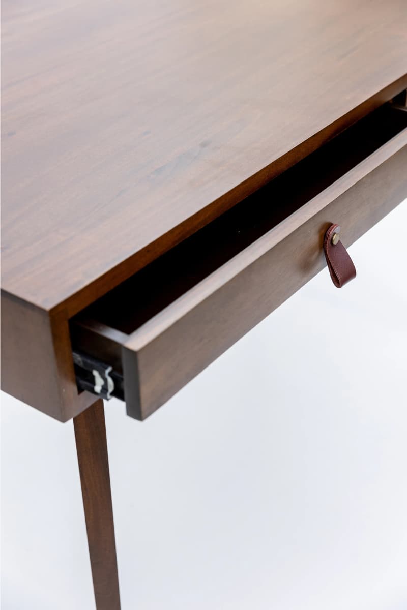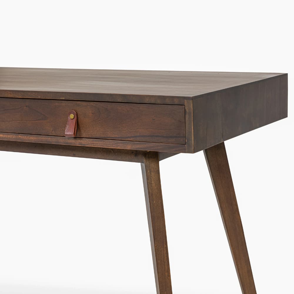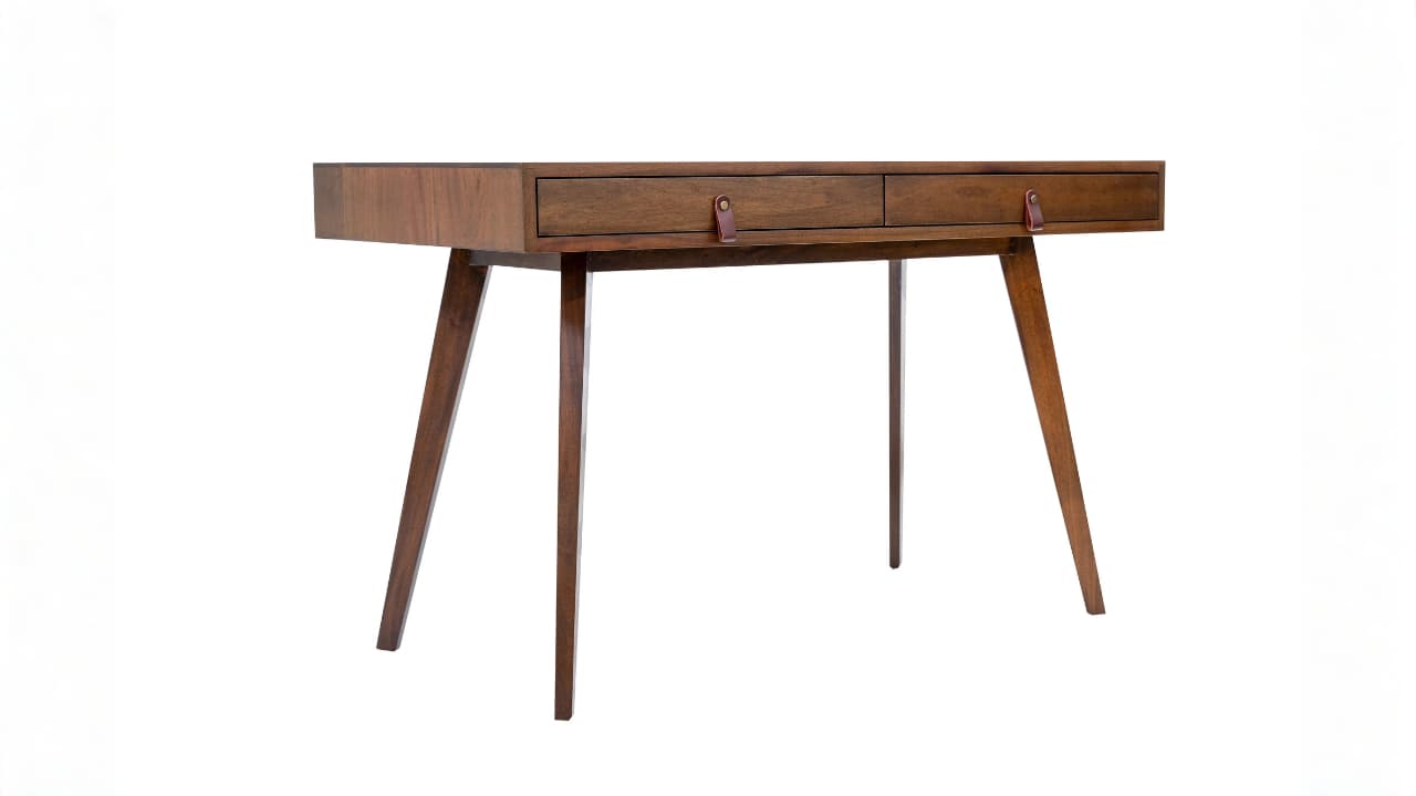 The Mavros Work Desk presents a bold yet refined design crafted from rich mahogany, highlighting its natural grain and depth. Clean lines, angled legs, and minimalist drawers create a subtle mid-century appeal, while leather pulls add texture. Blending elegance with practicality, it brings timeless craftsmanship and understated luxury to modern workspaces.