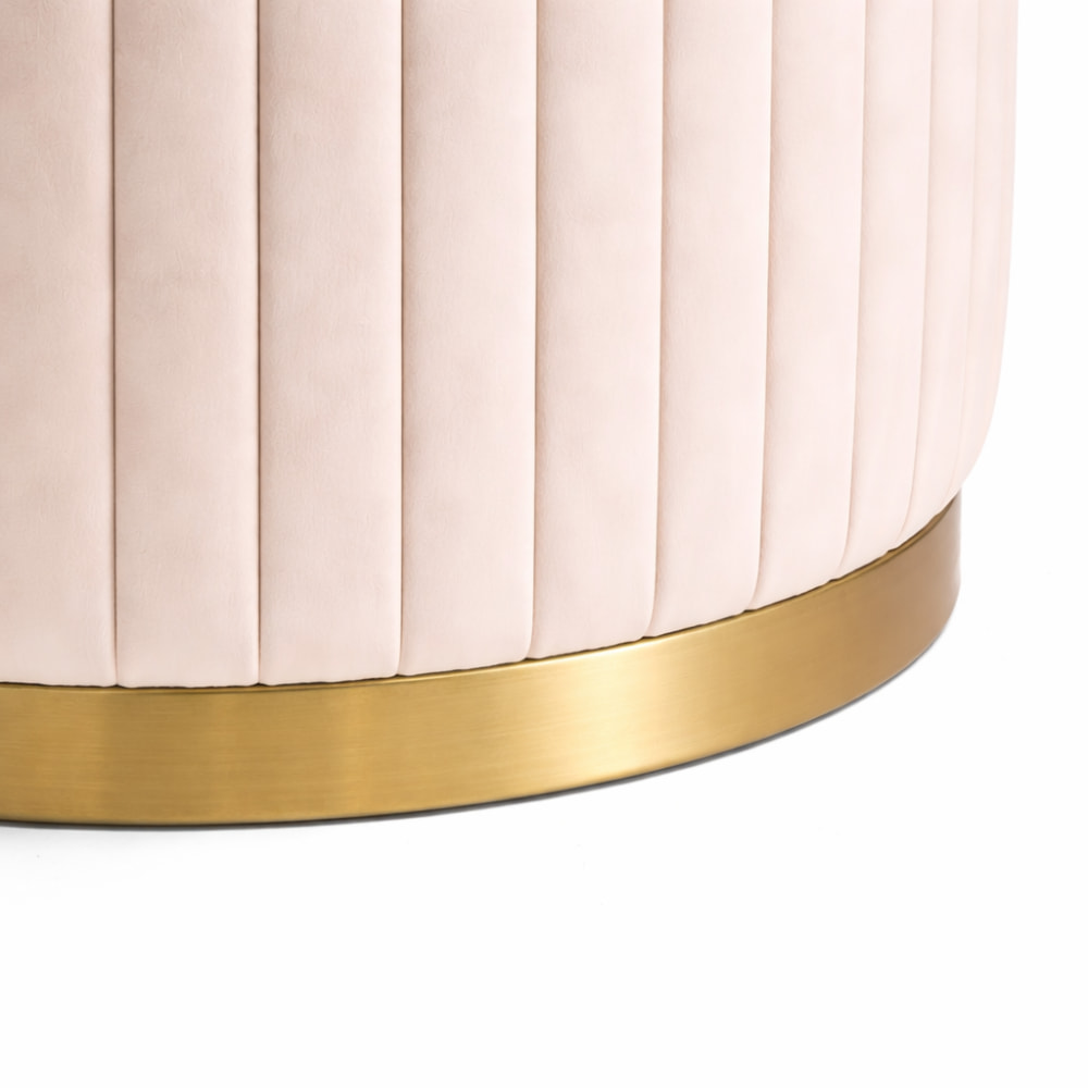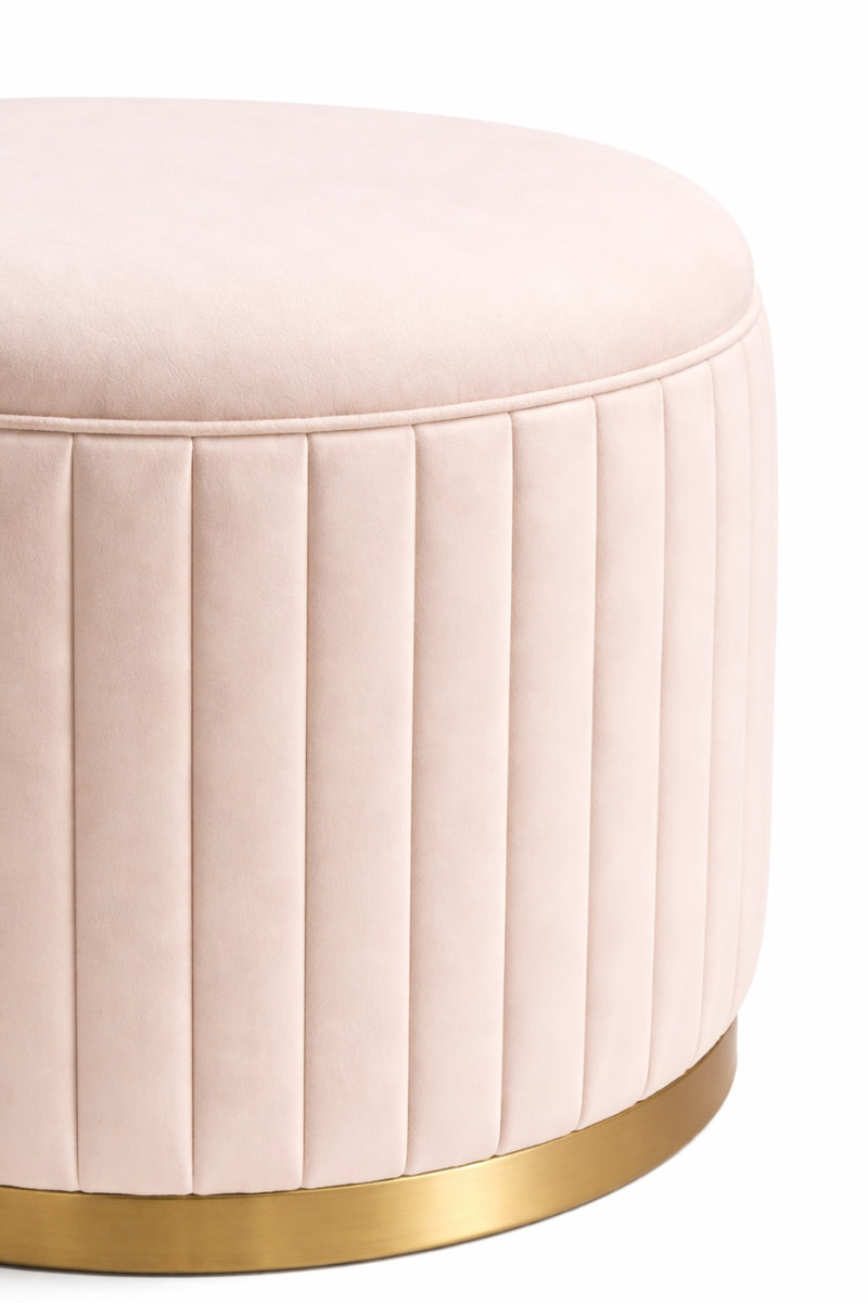 Bella Ottoman – Embodies understated elegance with its soft upholstered finish and refined vertical detailing. Accented by a sleek gold base, it adds a touch of sophistication and warmth to any bedroom or living space.