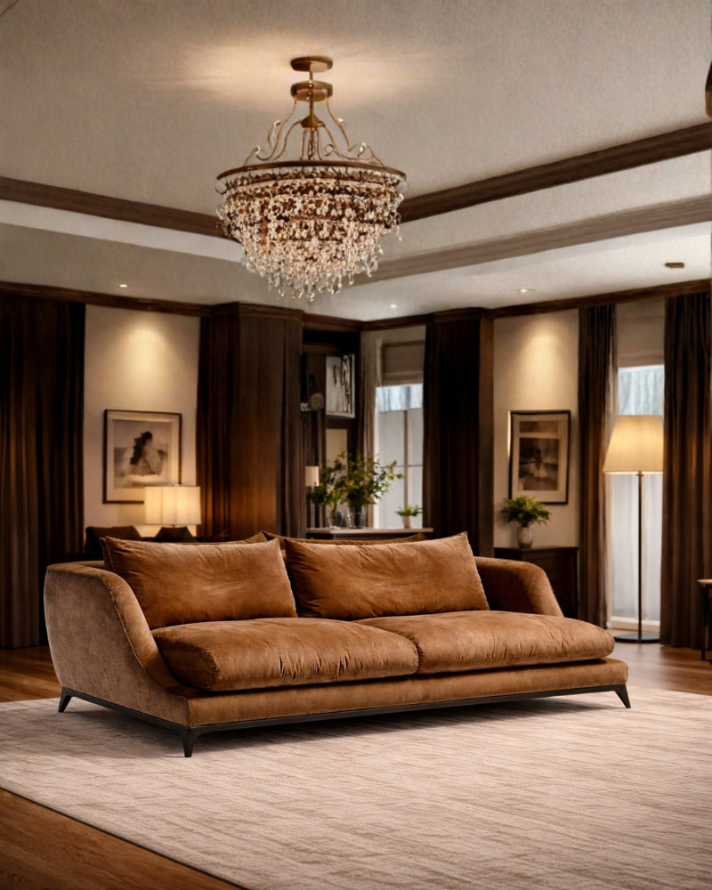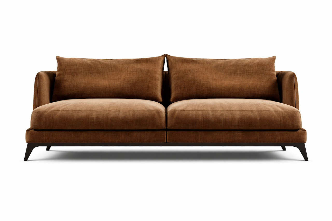 Madeza Sofa – A sleek modern sofa with plush deep cushioning and customizable fabric options, designed to elevate any living space with timeless comfort and style.
