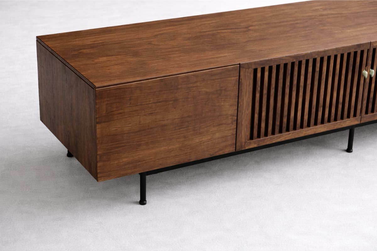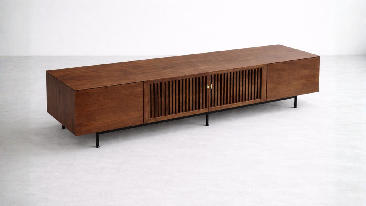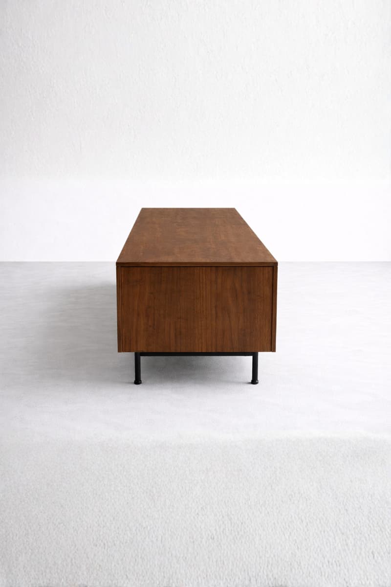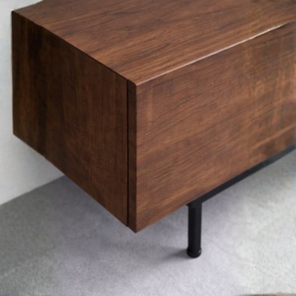 Madeza TV Console – Features a clean, minimalist silhouette enhanced by its rich wood finish and refined craftsmanship. Elevated on sleek metal legs, it brings a perfect balance of warmth and contemporary sophistication to any modern living space.