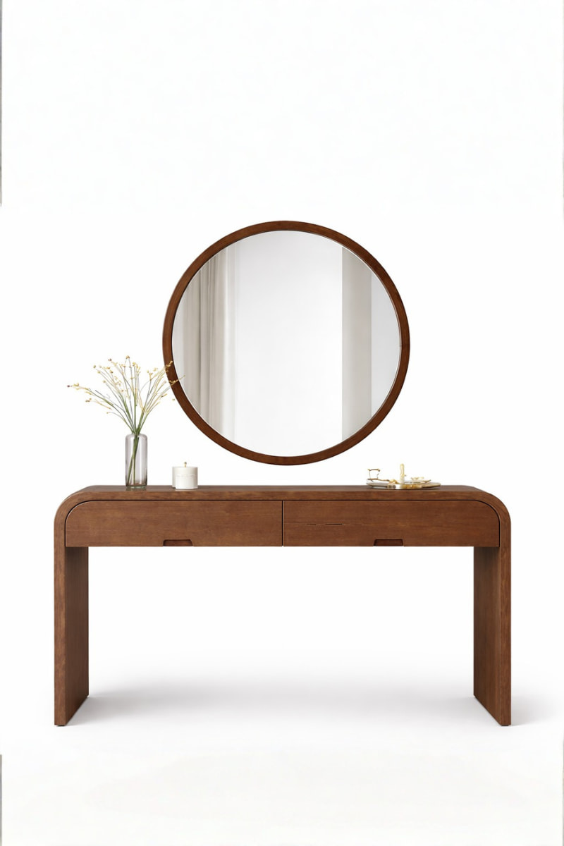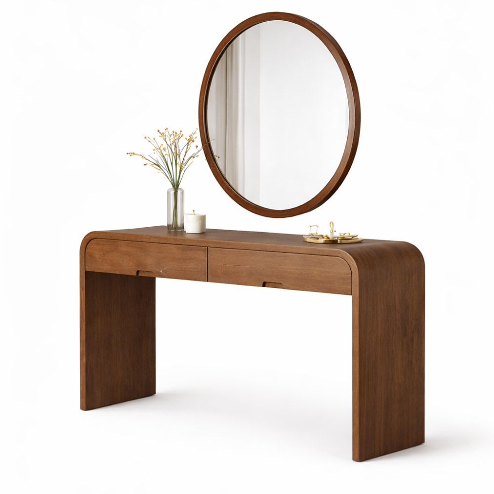 Lex Dresser – Features a sleek waterfall silhouette with softly curved edges, bringing a refined and modern touch to your space. Designed with spacious drawers and a warm wood finish, it blends functionality with timeless elegance.